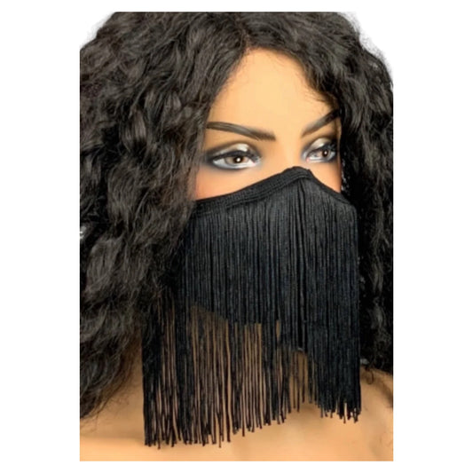 Black 6 inch Fringe Face Mask