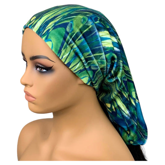 Green and Blue Print Wide Scrunch Headband