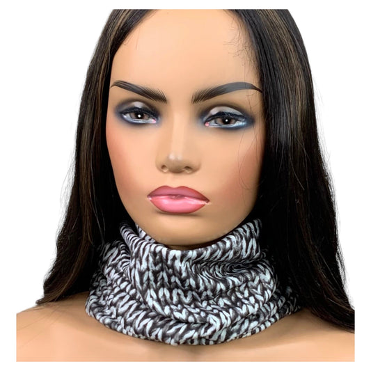 Black and White Knit Print Wide Scrunch Headband