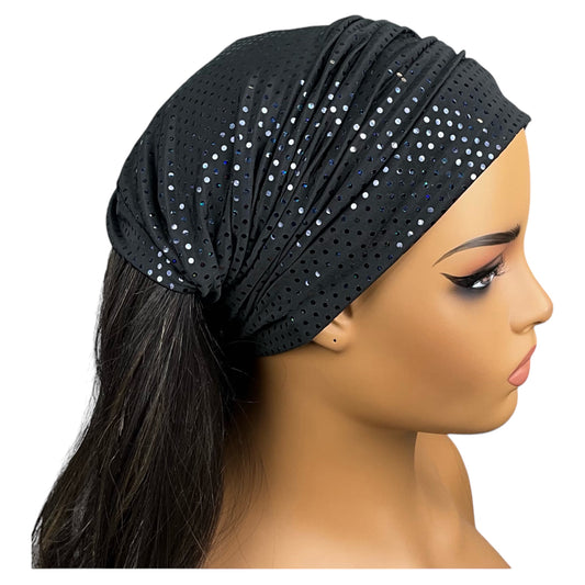 Black Iridescent Polka Dot Wide Scrunch Headband