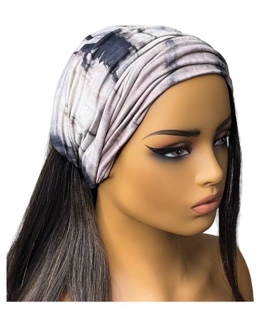 Beige and Black Tie Dye Wide Scrunch Headband