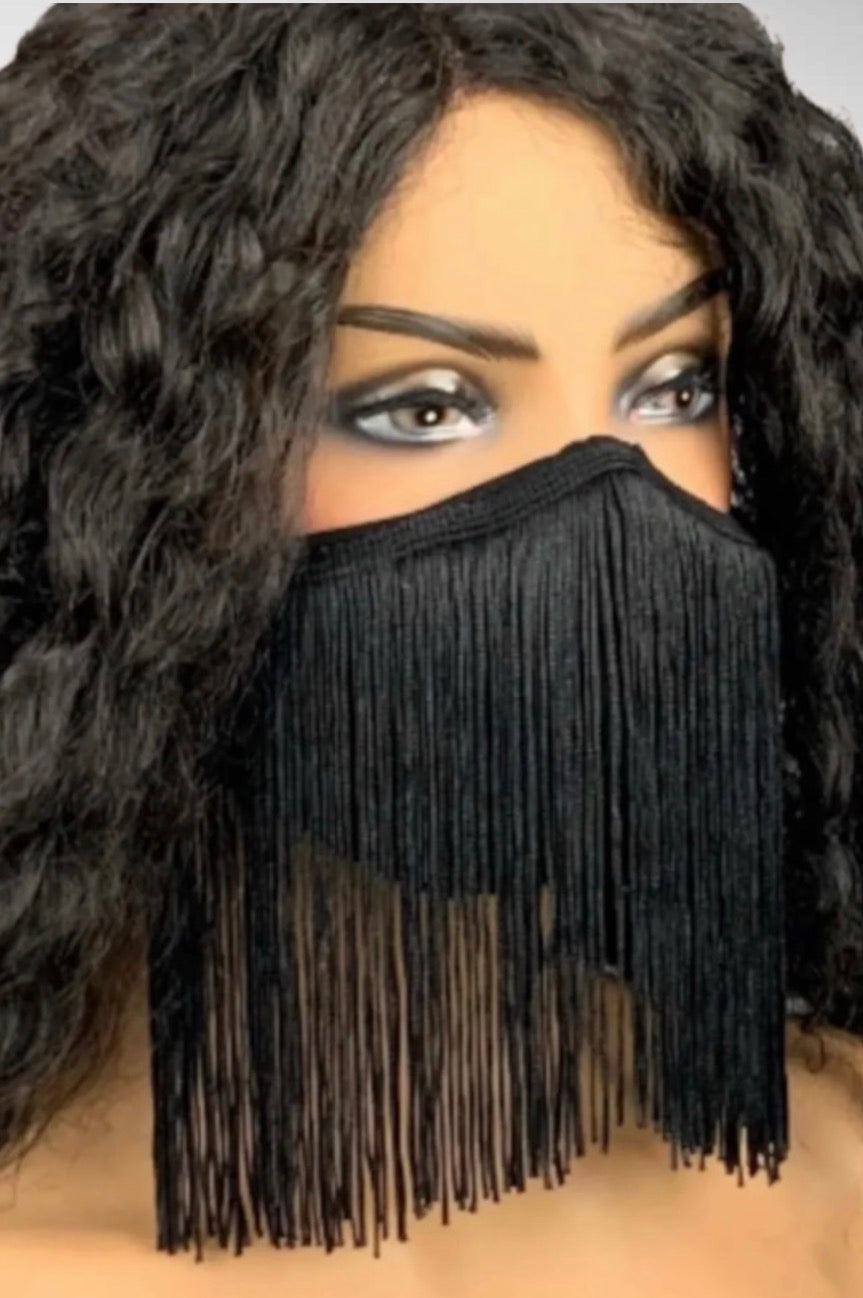 This mask has 2 elastic straps that go around the ears with cord stops for adjusting