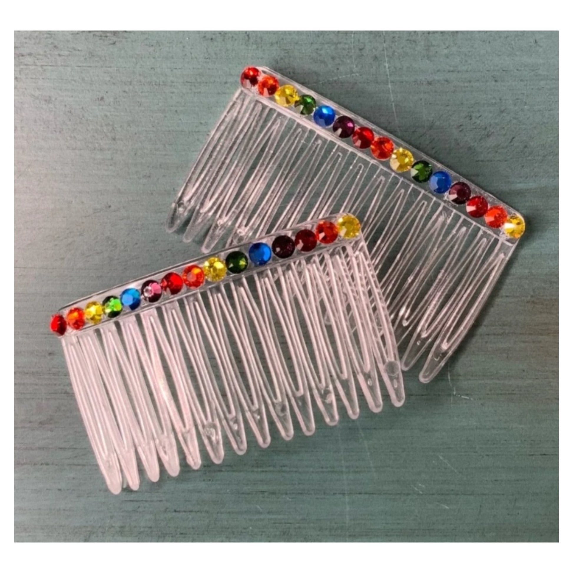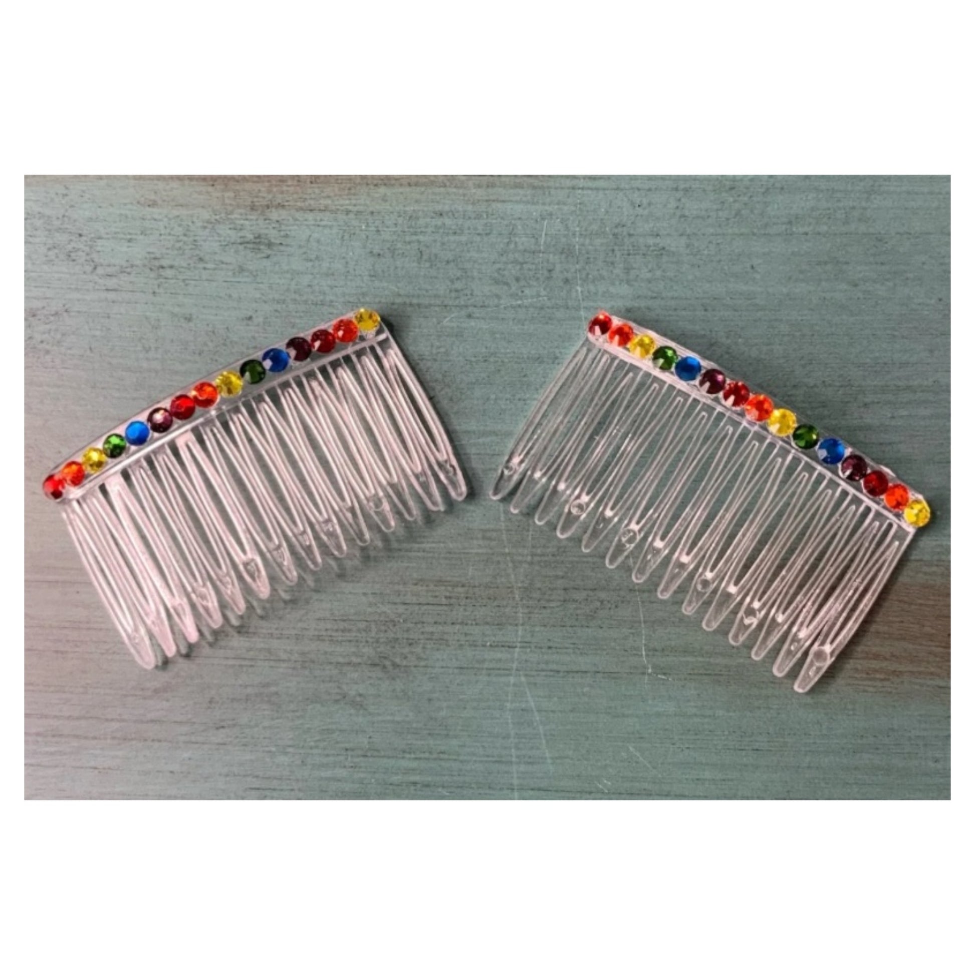 Rainbow Rhinestone Hair Comb Set