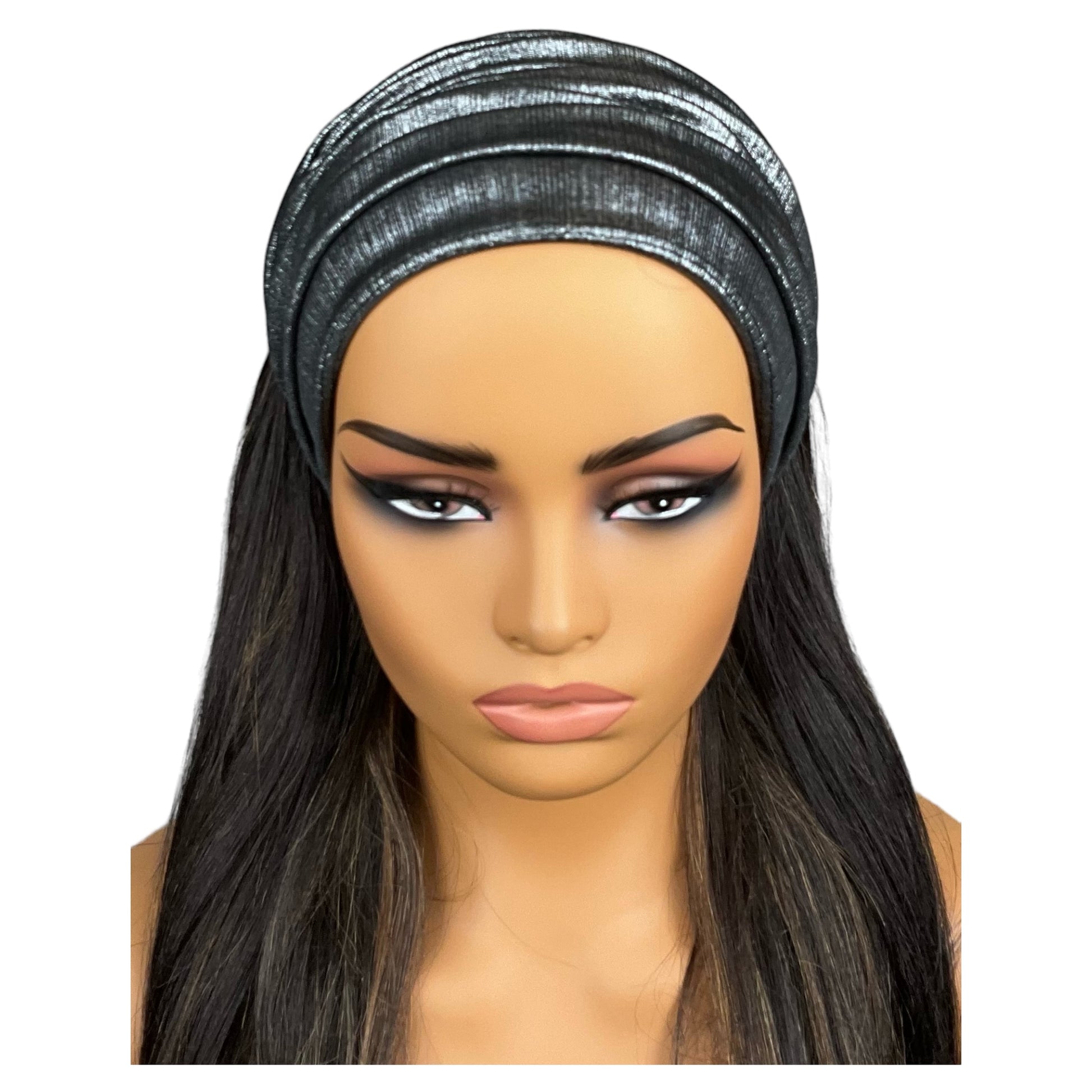 It can be worn as a scrunch headband, turban headband, a bandana headband, a long scarf and as a neck scarf
